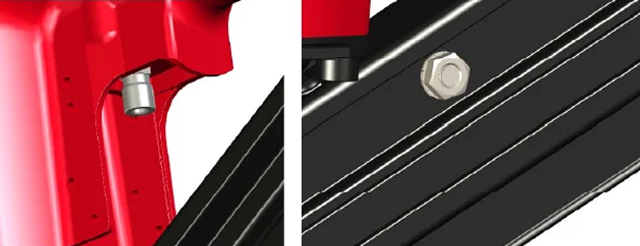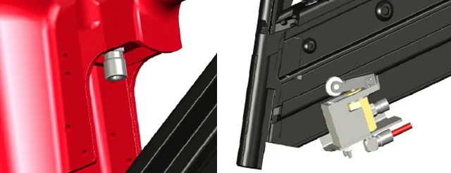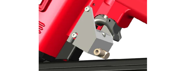 This tool is intended for applications where the system hovers the tool over the work surface. A secondary material sensor should be utilized for safety. This tool features a positive internal valve actuator remote fire trigger. The trigger air routes through a pneumatic reload indicator that shuts off the trigger air when reloading is necessary.