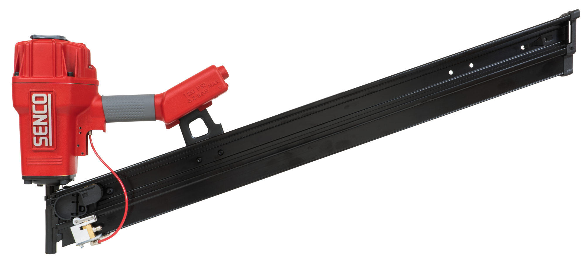 Includes anodized sleeve, urethane sleeve cap, fixed firing valve, and a positive stop guide body that aligns nail and driver for a consistent drive